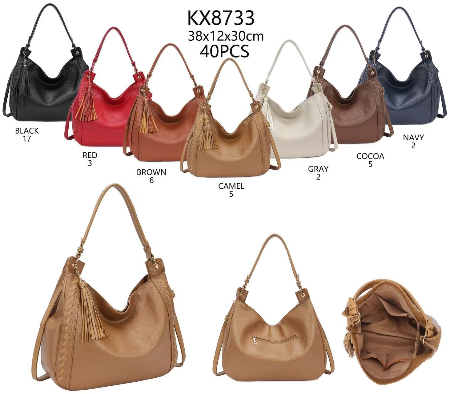 Beige, Black, Blue, Brown, Camel, Coffee, Red
